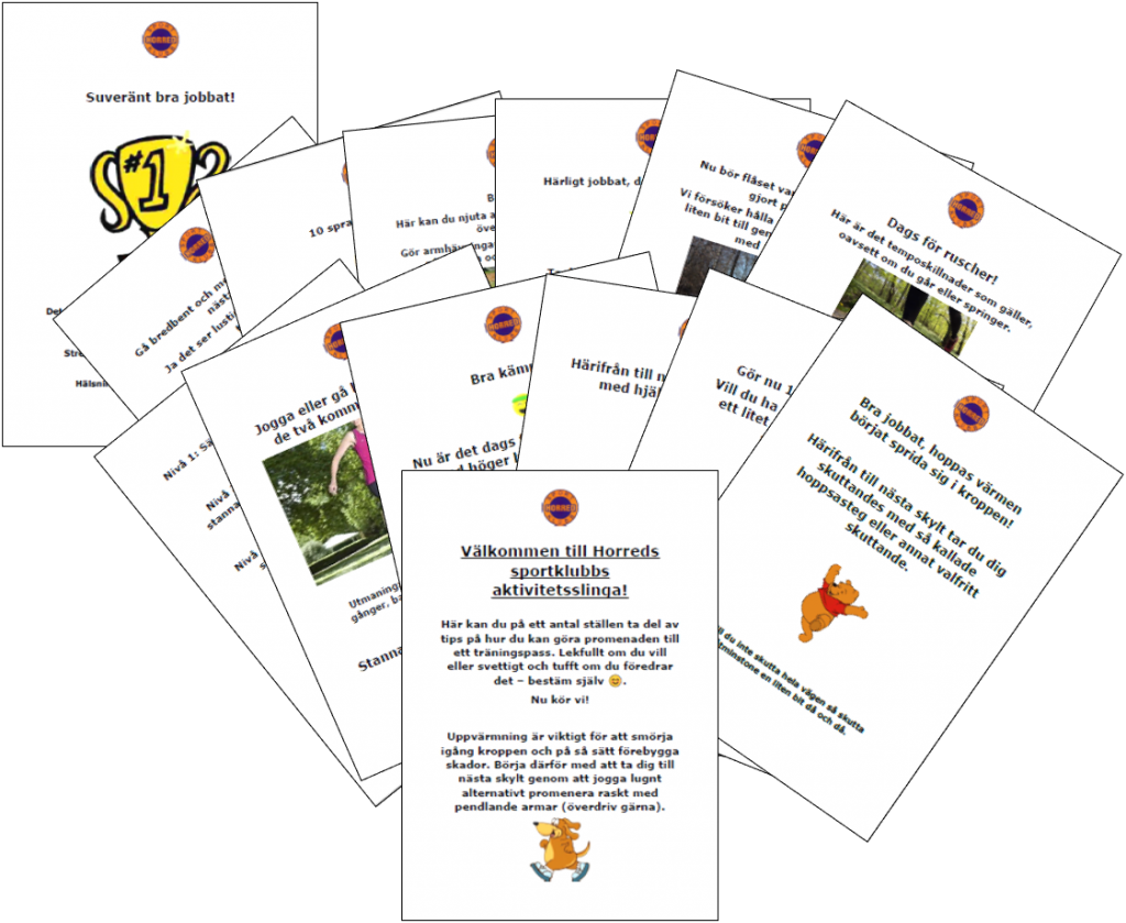 För att träna, umgås utomhus med familjen, utmana dig själv eller av vilken anledning som helst egentligen, så tycker vi i Horreds sportklubb att du ska testa vår nya ”aktivitetsslinga”. Den sträcker sig längs med det 2,5 km långa elljusspåret vid Kilastugan. Här tar du dig fram genom att följa instruktioner på skyltar längs med spåret. Det är allt från lekfulla övningar som passar hela familjen till mer tuffa utmaningar där även du som är träningsvan kan utmanas. Du kan anpassa övningarna efter dig och din nivå men tänk också på att anpassa dem efter underlaget, det kan vara både ojämnt och halt på vissa ställen.