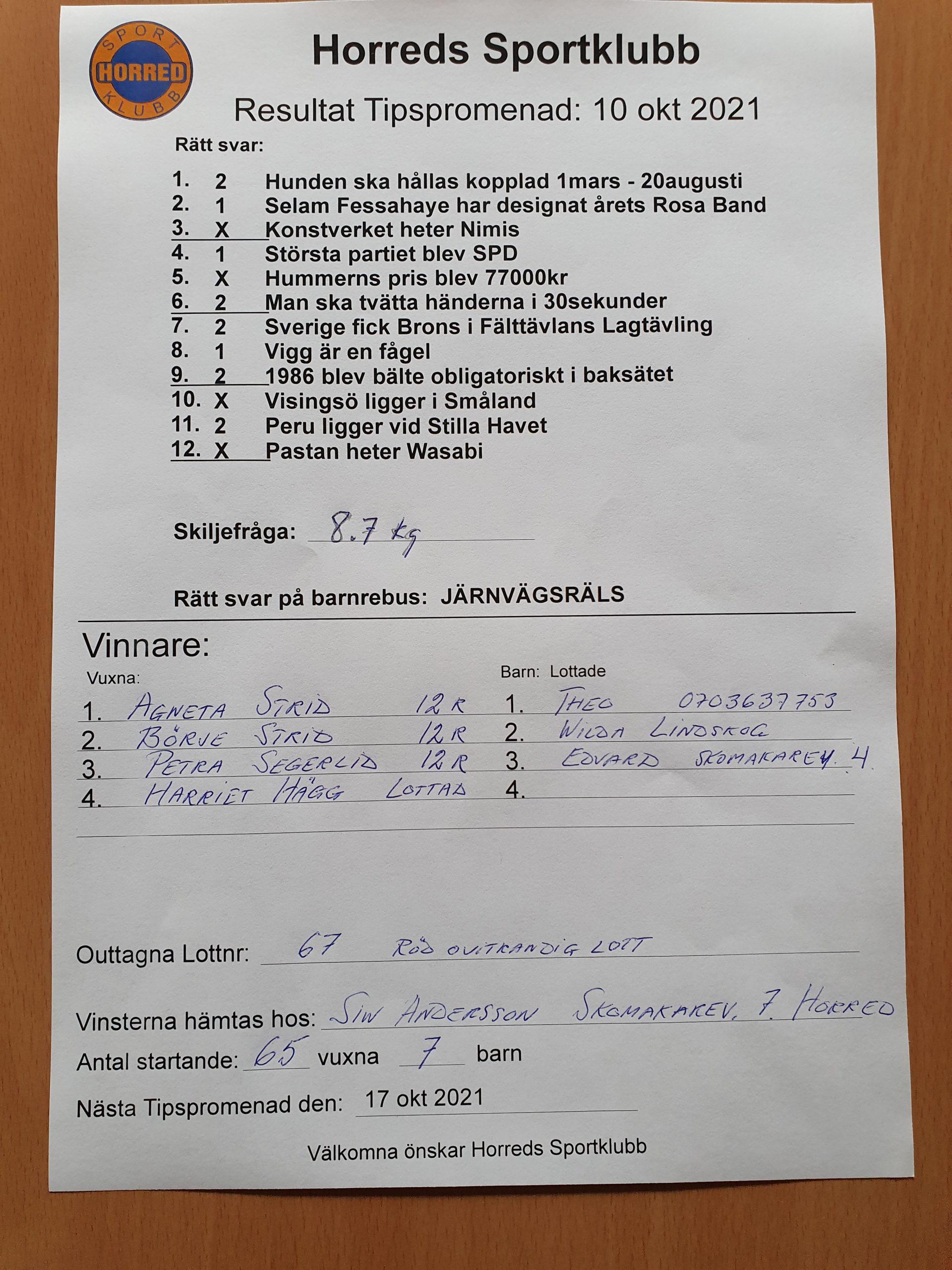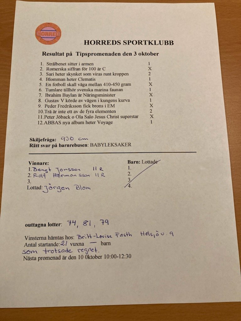 Resultat Tipspromenaden 3okt Posted on 3 oktober, 2021 by Jonny Andersson Svara Dela inläggetFacebook