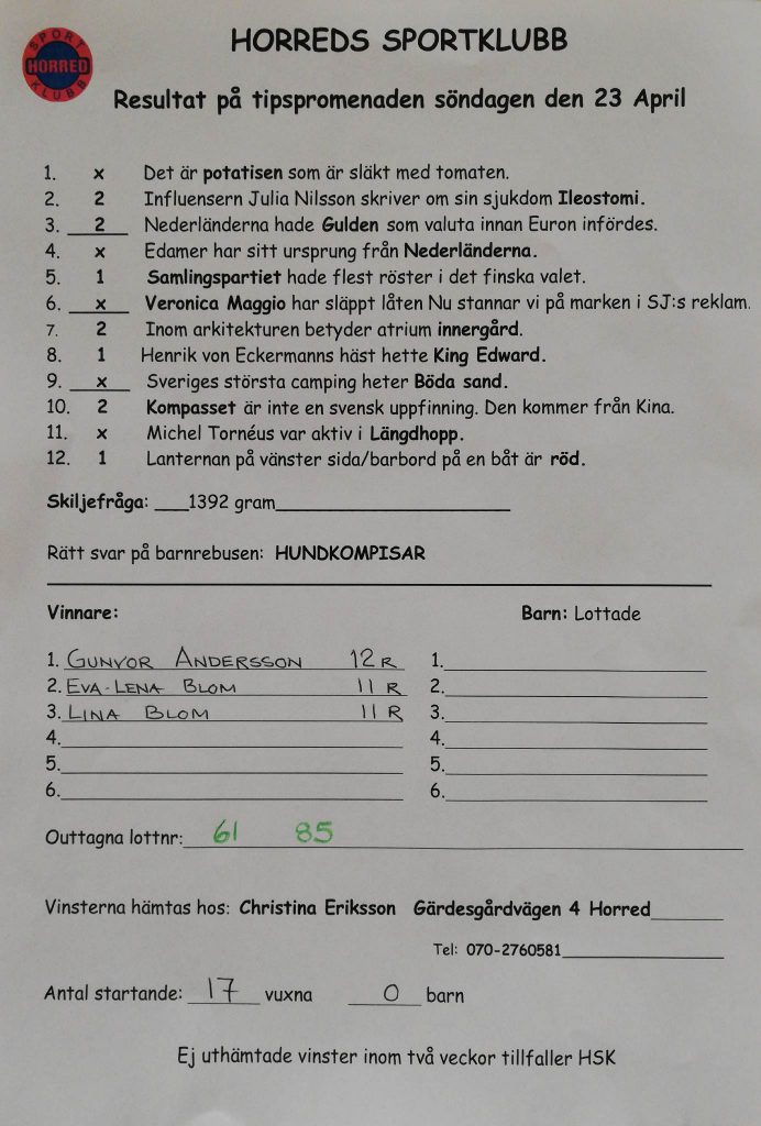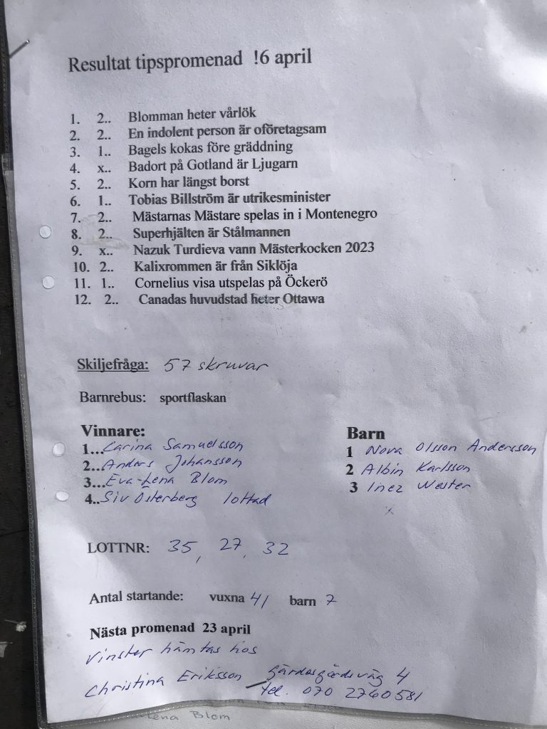 Resultat Tipspromenaden 23april Posted on 24 april, 2023 by Jonny Andersson Svara Dela inläggetFacebook