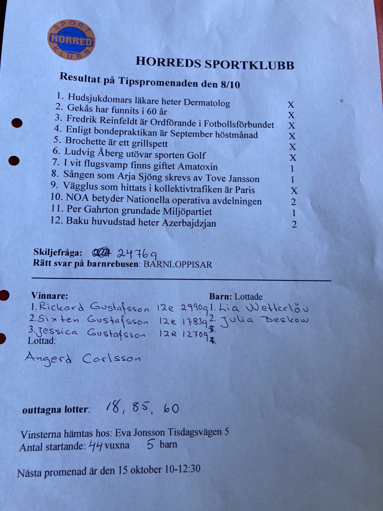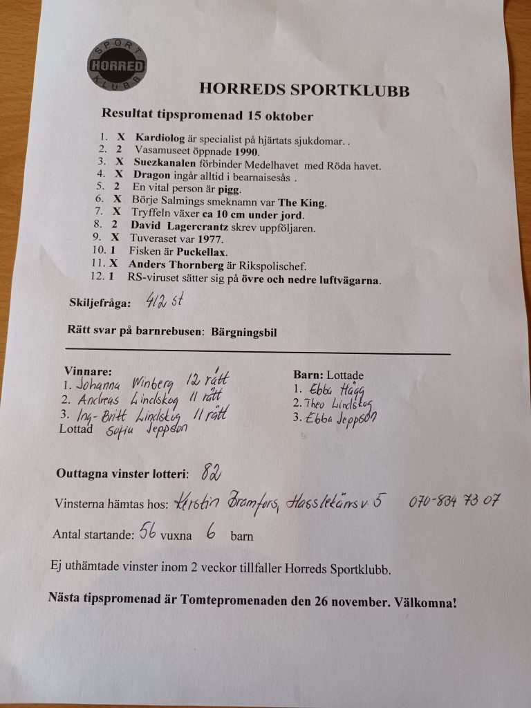 Resultat Tipspromenaden 15oktober. Posted on 15 oktober, 2023 by Jonny Andersson Svara Dela inläggetFacebook