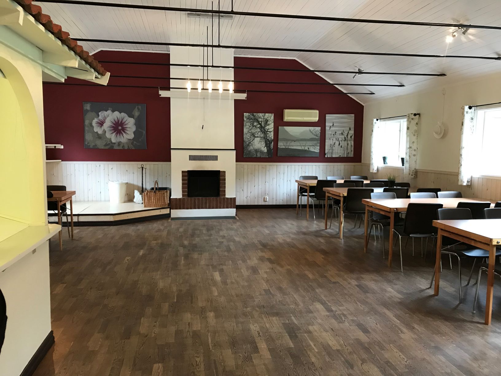 I matsalen finns en öppenspis som värmer gott och ger en härlig trivsel.